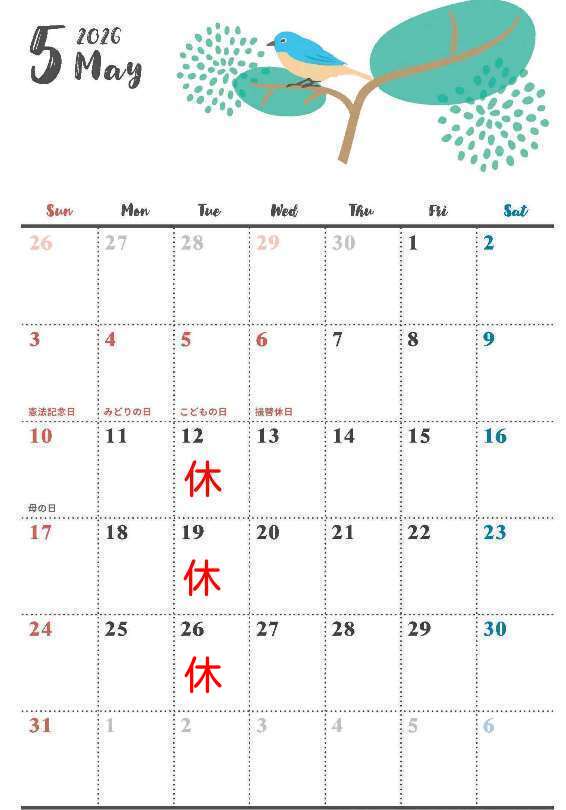 ゴールデンウイーク中は 下記の営業となります。