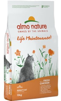 新鮮なカタクチイワシ 26%、トウモロコシ(遺伝子組み換えでない)、ドライチキン 19.2%、米、鶏脂肪、トウモロコシタンパク質(遺伝子組み換えでない)、加水分解された動物性タンパク質、玄米粉、ミネラル、マンナンオリゴ糖 0.1%、植物由来チコリから抽出イヌリン-フラクトオリゴ糖FOS 0.1%を含む